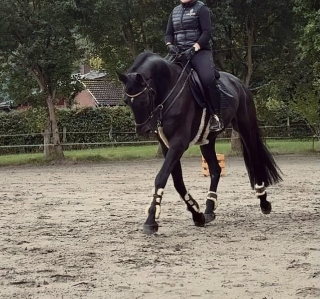 À vendre, ce robuste hongre Holsteiner de 5 ans, par Chezarro, avec une taille d’environ 1,70 m. Ce jeune partenaire de sport se distingue par sa volonté de performer et son caractère sincère. Il impressionne particulièrement en saut d’obstacles. Il connaît aussi bien le carré de dressage que l’écurie intérieure et le terrain extérieur. De plus, il est habitué au déchargement ainsi qu’à monter en extérieur, et il fait preuve d’assurance dans ces situations. Un hongre polyvalent et talentueux, idéal aussi bien pour des cavaliers de loisir ambitieux que pour une utilisation sportive. Il n’a pas encore été présenté en compétition. La vente se fait pour le compte de l’éleveur. Pour toute demande, merci de contacter uniquement par téléphone au 017686274382.