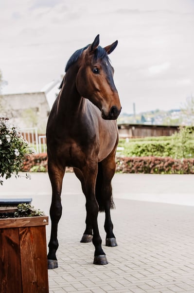 🌟 Cheval Holsteiner de caractère – Crime is Colin x Cornet Obolensky 🌟 Ce magnifique hongre holsteiner de cinq ans séduit par son pedigree exceptionnel (Crime is Colin × Cornet Obolensky), son expression et son tempérament sincère. Il attire l'œil par son type marqué, ses trois allures fondamentales de qualité et son bon caractère. Actuellement mesurant 1,86 m. Que ce soit en dressage, en travail à pied, en saut d'obstacles ou en extérieur, il se montre toujours motivé, curieux d'apprendre et sans peur. Déjà expérimenté lors de ses premières compétitions, il fait preuve de courage et d’une attitude positive envers le travail. Dans le quotidien, c’est un véritable trésor – proche de l’humain, amical et toujours désireux de bien faire. Bien entendu, il est ferré et chargé sans problème, régulièrement vu par le chiropracteur et le vétérinaire dentaire, et à jour de ses vaccinations et détartrages. Un cheval dont l’attitude, le caractère et la qualité intéressent aussi bien le cavalier ambitieux que le cavalier de loisir exigeant. Cependant, un foyer 5 étoiles est recherché pour lui ! Il n’a pas encore passé de contrôle vétérinaire. Essai à 30 € ! Vidéo sur demande. Cordialement
