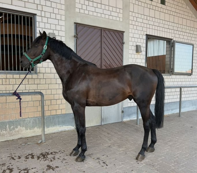 6-year-old, well-bred, beautiful Holsteiner gelding (Oxford Quality x Uriko), dark brown, approximately 1.66 m tall for sale. The gelding has been professionally presented in his first season and has consistently placed and won in A*, A**, and L show jumping competitions with scores of 8. Due to a reduction in stock, he is only available to good hands. Suitable for amateurs and ambitious young riders with a trainer who can further develop the horse's potential. The gelding is shoeing and loading friendly, goes out on trails, and is well-mannered. Location: Mecklenburg - Vorpommern. Please contact via WhatsApp at 0176 315 52 775.