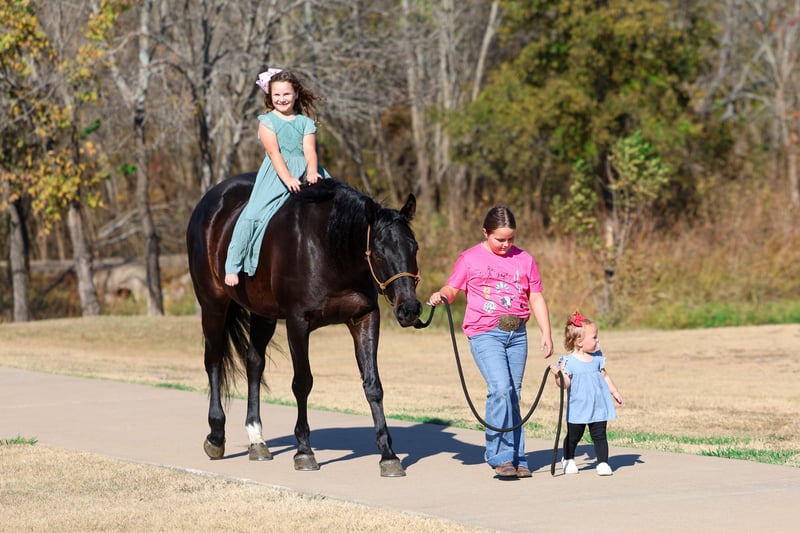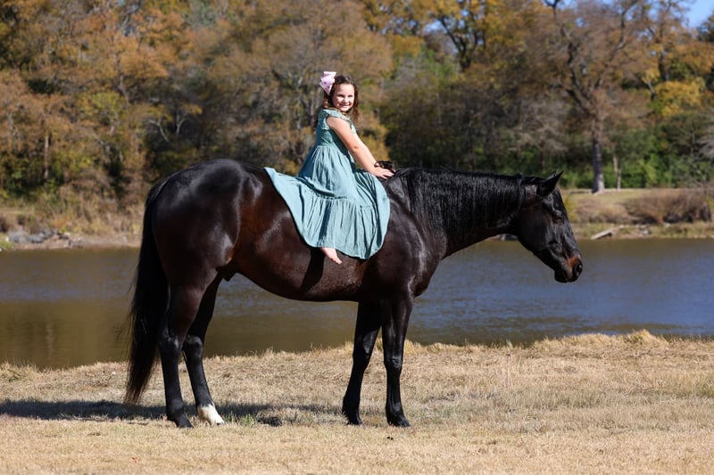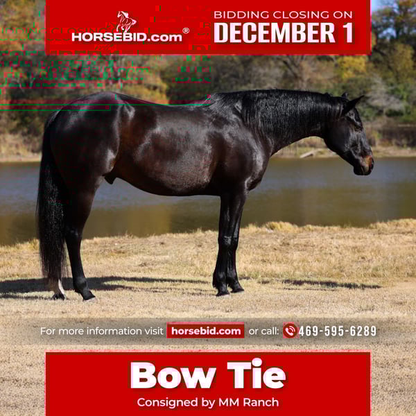 ⚜️ 𝓽𝓱𝓮 𝐇𝐨𝐫𝐬𝐞𝐦𝐚𝐧'𝐬 𝓢𝓱𝓸𝔀𝓬𝓪𝓼𝓮⚜️ Happening now thru MONDAY | DECEMBER 1st - Available EXCLUSIVELY on HorseBid's website! For more details and to register visit: www.Horsebid.com CONSIGNOR CONTACT: MM Ranch 469-595-6289 LOCATION: Forney TX BREED: Holsteiner REGISTERED: No COLOR: Black HEIGHT: 16.3 AGE: 5 GENDER: Gelding Bow Tie is a unique and versatile 16.3 hand tall holsteiner gelding that is just 5 yrs old. Yes just 5 yrs old!!! And has his whole life ahead of him. He was raised at the university in Wyoming. They spent a lot of time and energy training him the correct way. He had most of his training in low level dressage and jumping. He is such a pretty flat mover. Carries his head perfectly set. All of the hard work is done. He is ready for someone to get him and go on to do big things on him. The absolute best part about this big guy is he is an absolute puppy dog. He is so sweet and gentle. He is definitely a in your pocket type. He will see you coming and meet you at the gate. Excited to see you. Plus he rides just as gentle. You cannot make this guy get excited or act bad. He wants to please and wants to do a good job for you. He is hands down one of the coolest horses we have. We unfortunately do not ride dressage so we were not able to show him to his full capabilities. We ride western so while he has been here we have rode him western and let the kids ride him and enjoy him. They have had a blast loping him around. He has the silky jog and rocking chair lope to him. His lovely big long stride is so eye catching and pretty. He is so easy to ride. Just point and click. He is soft in a snaffle and comes into a frame effortlessly. Side passes, knows his leads, pivots, and has a great whoa button/back up! Bow Tie does not require any lunging prior to riding and is the same ride whether you ride him once a week, once a month, or once every 6 months. He is absolutely suitable for any level rider of any age. Even would work for complete beginners. He is safe. And I mean safe. He is never grumpy or in a bad mood. He has the most friendly sweetest personality. I can’t say that enough times!! He absolutely loves attention and wants to be around you. He is easy to catch/tie, stands quiet for mounting, especially when using a mounting block. With his training and temperament we know he will make a great partner for any youth or adult looking for confidence in and outside the show pen! Again he is safe with no buck/bolt/rear. No bad habits whatsoever. Sells 100% sound and ready to go. We recently dewormed, vaccinated, had his teeth floated, and pulled a new coggins. He requires no maintenance or special treatment! He can live a show horse lifestyle in a stall or be kicked out to the pasture. It’s doesn’t matter to him. Hops right in the trailer, trailers well, backs off like a gentleman. Truly a once in a lifetime horse. We can and will help arrange affordable shipping anywhere.