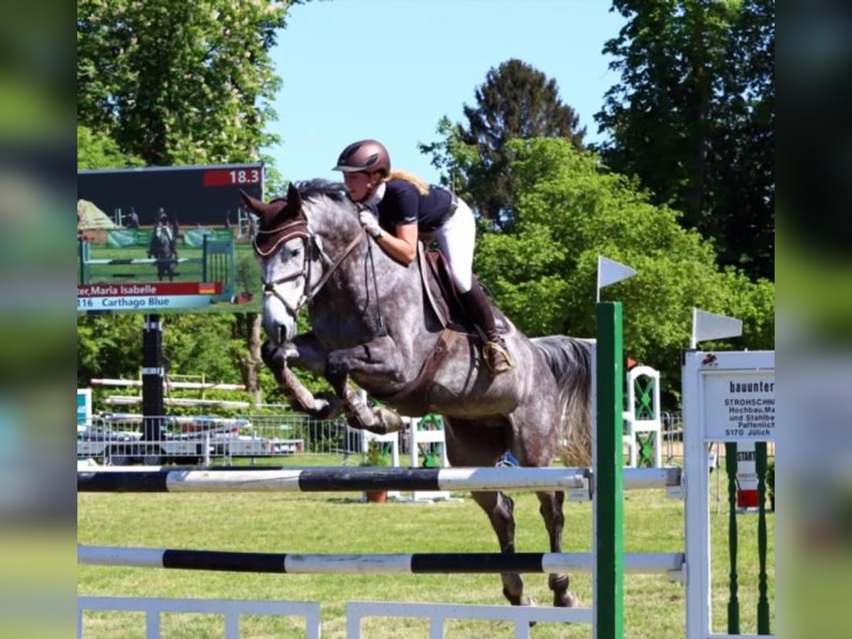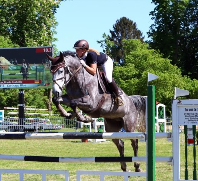 Talentierter und vermögender Lehrmeister für die schweren Klassen mit viel Ehrfahrung auf dem Turnierplatz. Er springt zuverlässig und sauber über den Sprung und kann mit der richtigen Förderung deutlich mehr erreichen. Im Umgang zeigt sich der Wallach stets zuverlässig und kopfklar, was für ein super Handling spricht. Unarten kennt er nicht, weshalb er sich stets vorbildlich zu präsentieren weiß. Beim Freispringen und der Longenarbeit erweist er sich als konzentriert, leistungsstark und mit der richtigen Arbeitseinstellung. Dies zeigt er ebenfalls in fremder Umgebung und bleibt dem Menschen stets zugewandt. Unter dem Reiter ist Gunter ein fein zu reitender Wallach, der mit dem richtigen Go ausgestattet ist. In der Dressur ist er auf A Niveau und im Springen auf M Niveau ausgebildet. Der Turnierplatz ist seine Welt und er präsentiert mit Freude sein Können. Derzeit läuft er L/M Springturniere und steht somit in vollem Training, wodurch direktes Probereiten auch möglich ist. Anschauen, probereiten und direkt losstarten, nutzen Sie Ihre Chance auf ein top ausgebildetes Pferd. Gunter steht aktuell nachts in der Box mit täglichem Paddockgang und ist seinen Artgenossen sozial eingestellt. English: He jumps reliably and cleanly and, with the right training, can achieve significantly more. This gelding is always reliable and level-headed, which speaks to his excellent handling. He has no vices, which is why he always presents himself impeccably. During free jumping and lungeing, he proves to be focused, powerful, and possesses the right work ethic. He also demonstrates this in unfamiliar surroundings and remains consistently friendly towards people. Under saddle, Gunter is a responsive gelding with excellent impulsion. He is trained at the A level in dressage and at the M level in show jumping. The show ring is his element, and he enjoys showcasing his abilities. He is currently competing in L/M level show jumping competitions and is therefore in full training, making a test ride possible. Come see him, try him out, and get started right away – seize this opportunity to own a top-trained horse. Under saddle, Gunter is a responsive gelding with excellent impulsion. Gunter is currently kept in a stall at night with daily access to a paddock and is socially minded towards his fellow animals.