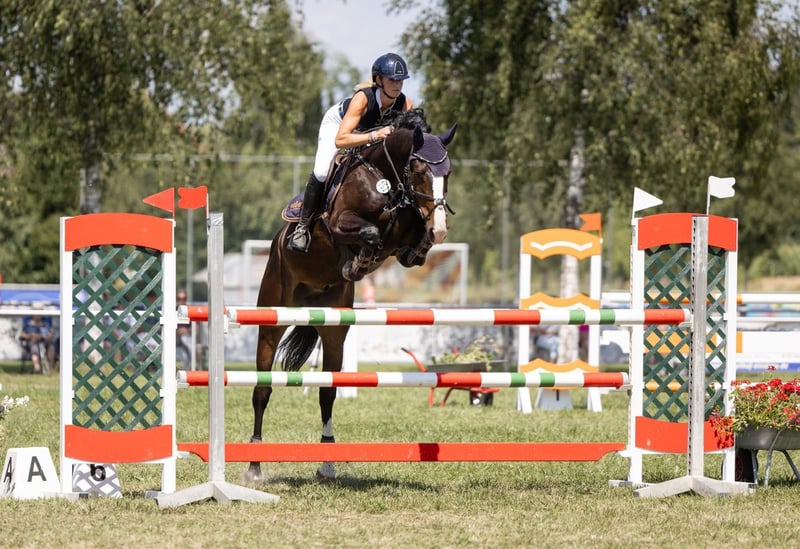 Mio es un potro de 6 años, muy cariñoso y amigable con las personas. Se lleva bien con sus congéneres y sale en manada a pastar. Es tranquilo en el remolque, entra solo en el transporte y se queda quieto incluso cuando el otro caballo se aleja. Tiene excelentes movimientos básicos y está sólidamente preparado en doma clásica; en salto, ya ha competido hasta 125 cm. Ha obtenido clasificaciones en pruebas de salto en clases A, L y en saltos hasta 115 cm. Lamentablemente, Mio tiene un problema con el agua en el recorrido de salto. Tiene potencial para disciplinas de mayor nivel, pero la presencia de agua es un inconveniente para él, lo que le impide alcanzar su máximo rendimiento. En algunos recorridos salta sin problema, en otros no. En casa, con entrenamiento, se le puede convencer tras un tiempo y termina saltando esas dificultades. Es muy manejable, va solo al campo, incluso atraviesa charcos sin problema. Es muy amigable con los niños. Lo entregamos con pesar, ya que actualmente tenemos demasiados caballos y simplemente no disponemos del tiempo suficiente. No se ha realizado un examen de salud completo (AKU), pero puede hacerse a petición y por cuenta del interesado. Si te enamoras de este hermoso caballo, con un carácter excepcionalmente dulce y cariñoso, y quieres conocerlo, no dudes en contactarnos.