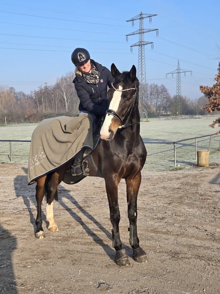 Mio ist ein 6-jähriger, sehr menschenbezogener und lieber Wallach. Er versteht sich mit seinen Artgenossen, geht in der Herde auf die Koppel. Er ist verladefromm, geht alleine auf den Anhänger und LKW, bleibt auch alleine stehen, wenn das andere Pferd ihn verlässt. Er hat tolle Grundgangarten, ist in der Dressur solide ausgebildet, im Springen ist er schon bis 125 cm gelaufen. Er hat Platzierungen in Springpferde A, Springpferde L und L-Springen bis 115 cm. Mio hat leider ein Problem mit Wasser im Parcours. Er hätte das Talent für den größeren Sport, jedoch ist das Wasser bei ihm leider ein Manko, womit er sich selbst im Weg steht. Es gab Parcours, da sprang er einwandfrei drüber, und Parcours, da ging es nicht. Zuhause, wenn man es mit ihm trainiert kann man ihn nach einer Weile überzeugen und er springt es dann auch. Dafür ist er sehr leicht in der Hand, geht alleine ins Gelände, dort läuft er sogar durch Pfützen. Er ist total kinderlieb. Wir geben ihn schweren Herzens ab, da es zu viele Pferde aktuell sind und einfach die Zeit fehlt. Eine AKU liegt nicht vor, kann aber gerne auf Wunsch und eigene Kosten durchgeführt werden. Wer sich in den hübschen Kerl mit dem außerordentlich tollen und liebevollem Charakter verliebt und ihn kennen lernen möchte, darf sich gerne melden.