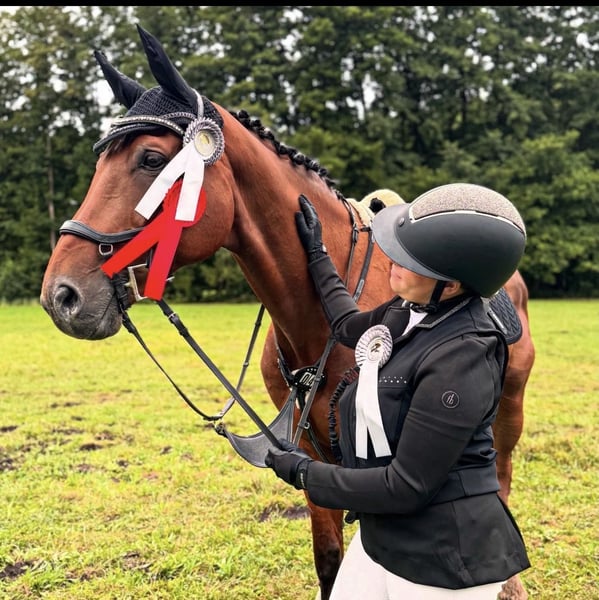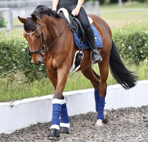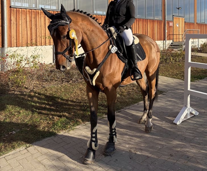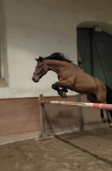 Abstammung: Quidem de Revel x Contender Geboren: 06.05.2012 Größe: 1,65 m Rasse: Holsteiner Disziplinen: Springen & Dressur Impfstatus: Tetanus, Herpes, Influenza ⸻ 🏇 Ausbildung & Leistungsstand Quitano ist ein toll ausgebildeter Holsteiner mit vielseitiger Veranlagung für Springen, Dressur und Gelände. • Dressur: sicher auf A-Niveau • Springen: • In Dänemark im Training bis 1,40/1,45 m, platziert bis 1,25 m • In Deutschland bis 1,00 m platziert • Mit meiner Reitbeteiligung bis 1,10 m gestartet • Zuletzt siegreich im E-Springen • Gelände: kennt Wasser, Naturhindernisse und Geländesprünge Er geht alleine oder in der Gruppe ins Gelände, ob mit oder ohne Sattel, und kennt Stangenarbeit, Longe und Doppellonge. Quitano wird auch von Kindern geritten, sowohl frei als auch an der Longe. Im Springen hat er immer Zug zum Sprung, ist jedoch kein Selbstläufer – daher ideal für ambitionierte Reiter mit Gefühl. Ab A-Niveau wurde er mit Pelham geritten. ⸻ 🐎 Charakter & Haltung Quitano lebt in einer großen Box und geht täglich auf die Koppel, alleine oder zu zweit. Er ist ein ehrlicher, leistungsbereiter Wallach mit viel Herz, der ein liebevolles Zuhause sucht, in dem er weiter gefördert wird. ⸻ ⚕️ Gesundheit Im August 2024 hatte Quitano eine Kolik-OP – es wurde nichts entnommen, alles ist vollständig verheilt. Tierärztliche Unterlagen können selbstverständlich eingesehen werden. Seitdem ist er topfit und wird wieder normal gearbeitet. Keine aktuelle AKU vorhanden. ⸻ 💬 Sonstiges 📹 Videos auf Anfrage verfügbar. 📞 Bei Interesse oder Fragen gerne melden – wir freuen uns über ernstgemeinte Anfragen.