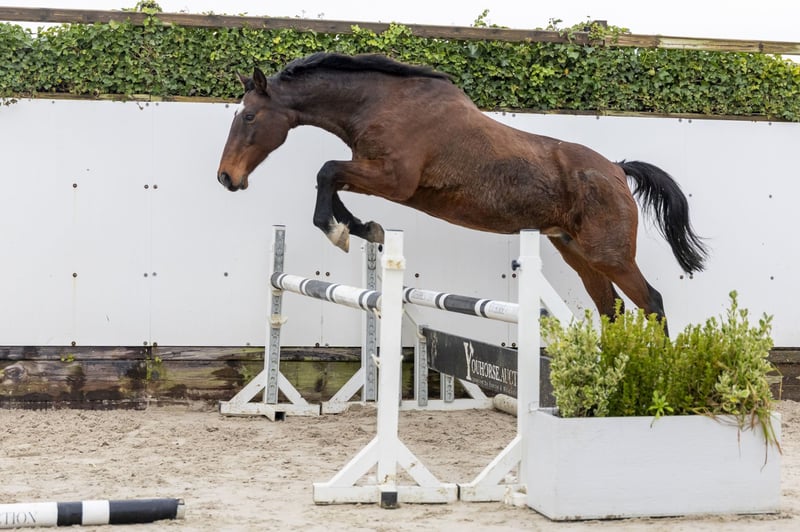 Sire Quantum (Quidam de Revel x Cor de la Bryère) competed himself at 1.60 m Grand Prix level and is one of the most influential sires in international show jumping breeding. He has produced numerous top-level sport horses, including Qena 2 (1.60 m), Quintero (1.60 m), Kuraz (1.60 m), and several other international performers. Quantum is renowned for passing on scope, reflexes, mental strength, and a powerful canter—traits highly valued in modern sport horse breeding. Cumera is a long-lined broodmare with a refined pedigree and a light-footed way of moving. In motion, she demonstrates excellent use of her hind leg, generating power from behind to the front. Over jumps, she is quick off the ground, jumps with expression and scope, and exhibits good technique and bloodlines. She uses her body well and shows natural athletic ability. She produced a foal in 2025 and has not been bred again, making this a unique opportunity to acquire a broodmare from a family that consistently produces international sport horses and approved stallions. Cumera is suitable to carry a foal herself but is also very interesting for embryo transfer and/or ICSI, allowing breeders to select the stallion freely and shape their own breeding program. The damline of Cumera is exceptionally deep and strongly performance-oriented. Her dam, Gracia I (by Lord), produced several international sport horses, including: – Ciao (by Calido I), 1.45 m international – GK Romy (by Contender), 1.60 m – Uleika (by Quantum), dam of: • GK Casper (by Canto), 1.60 m, winner at CSI4*-W Toronto and CSI5* podium finisher • GK Babette (by Lasino), 1.40 m • GK Charmeur (by Clarimo), 1.45 m • GK Quozient (by Quantum), 1.45 m • GK Quentin (by Quantum), 1.60 m, CSIO5* Nations Cup • Clark 30 (by Cassini I), 1.40 m Further along this damline, there is an impressive list of international sport horses and approved stallions, including: – GK C’est Un Rêve (by Comme Il Faut), 1.45 m, approved Holsteiner stallion – Stellar Skylight (by Conthargos), 1.50 m – Miss Saigon (by Alexis Z), 1.60 m – GK Cognac (by Concept), 1.45 m – Miss Aganix (by Aganix du Seigneur), 1.45 m – Lerano (by Lord), approved Holstein & Mecklenburg, 1.60 m – Jump One (by Capitol I), 1.50 m – Latina (by Lord), 1.50 m This family is renowned for its consistency, durability, mental strength, and top-level performance, with many horses competing at 1.40 m to 1.60 m levels and multiple approved stallions across several generations. Cumera is therefore an outstanding broodmare of exceptional genetic value, ideally suited for breeders seeking proven international performance, strong damlines, and future breeding potential.