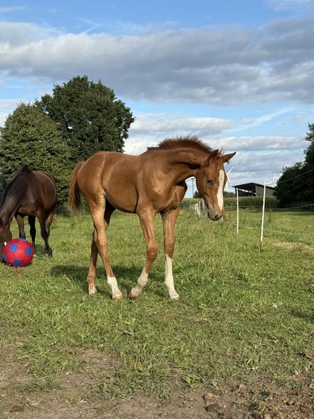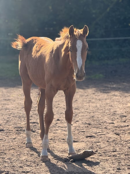 For sale is a promising Holsteiner stallion by Deichkind out of a mother by Amigo xx - Alcatraz - Wildfeuer - Anklang, born in May 2025. This elegant chestnut has great movements and is already very trusting. Expected final height will be around 170 cm. Dam line 318D1. He will be handed over in the fall with a solid foal ABC.