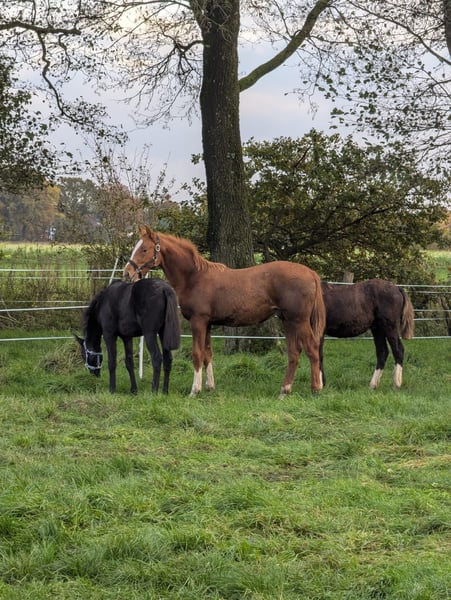 Se ofrece a la venta un prometedor semental Holstein de Deichkind, hijo de Amigo xx - Alcatraz - Wildfeuer - Anklang, nacido en mayo de 2025. Buscamos un nuevo hogar adecuado para este hermoso potro Holstein. Ahora busca a su persona, quien reconozca su gran potencial y lo apoye con cariño en su desarrollo. Es increíblemente dócil, curioso y cercano a las personas, disfrutando de cada momento. Sus movimientos son extraordinariamente hermosos, con mucho impulso y elasticidad en las tres gaits naturales. Será un caballo de gran tamaño, impresionante como caballo de doma o semental. Lo más importante, en resumen: - Raza: Holstein - Sexo: semental - Carácter: muy cercano a las personas y con ganas de aprender - Movimiento: expresivo y con buen ritmo - Particularidad: hermoso color y gran presencia - Disponibilidad: desde ahora - Actualmente en un potrero de cría Mi deseo es que tenga un hogar donde pueda crecer con corazón, entendimiento y tiempo. Importante: El precio no es negociable, ya que representa mi límite personal. Por la calidad, linaje y potencial de este potro, es una oferta más que justa.