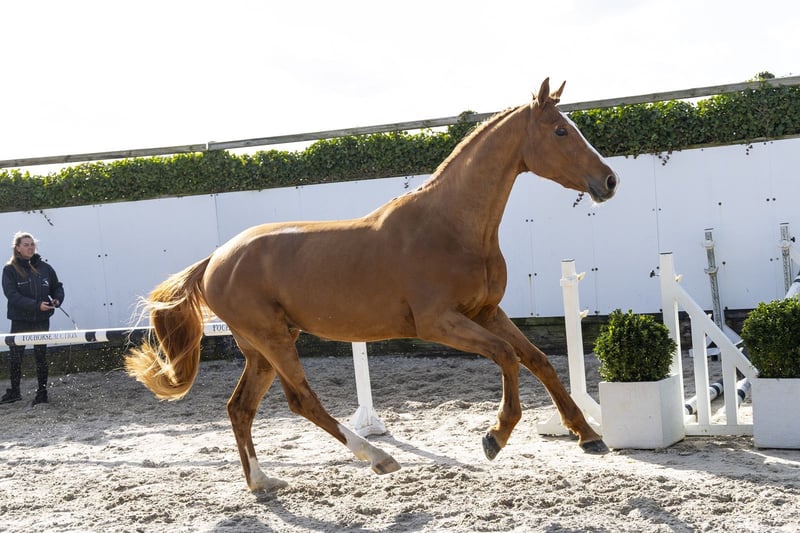 Vulkano T is a horse with a beautiful model and a lot of presence. He stands out with his big canter and shows a good attitude. A horse that tries hard and presents himself well. He moves very easily, with a good trot and a lot of suppleness. His way of moving and balance make him interesting for multiple disciplines. He would also not look out of place in the dressage ring. In our opinion a versatile horse with quality and broad potential for the future. Sire Vigado is a son of Vigo d’Arsouilles (1.60m) and shows a lot of scope and attitude, with performances up to 1.45m level. Dam G-Souvenier T is a daughter of Skyflight (1.40m) and comes from a strong line with clear dressage influence. The damline is notably versatile with both jumping and dressage performance: Don William – Grand Prix dressage Royal Chester – Grand Prix dressage Shadow’s Dream – PSG/Inter I Albertino – 1.40m jumping A family that combines versatility and quality.