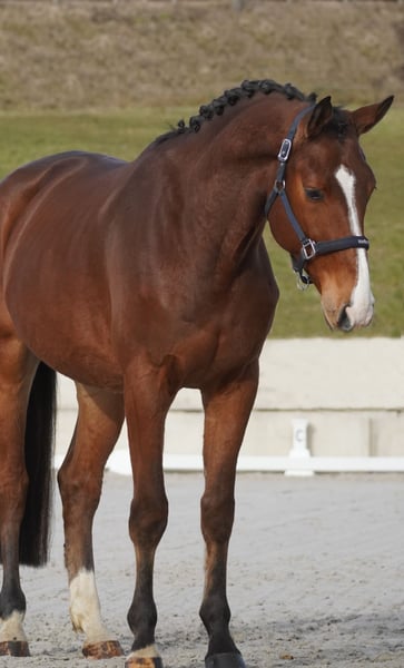 Qwertys is een Holsteinse ruin, 5 jaar oud en ongeveer 1,69 m groot. Vader: Quidam de Revel, moeder: Jalicso B x Contender, grootvader: Lancer II. *Qwertys* is een prachtige, zeer coole en ontspannen allrounder. Hij beweegt mooi in de dressuur, heeft goede gangen en is licht in de hand. Daarnaast toont hij goede sprongkwaliteit. Hij is onbevreesd en gedraagt zich braaf, zelfs in vreemd terrein, of hij nu alleen rijdt of in een groep. Rusttraining met zeilen en dergelijke vindt hij geen probleem. Wij kunnen ons hem ook heel goed voorstellen voor wat minder ervaren ruiters en jongeren! ZEKER ZIEN: ZIJN VIDEO! In omgang is hij een knuffelige en goed opgevoede schat. Zeer mensgericht en altijd lief in alles. Qwertys wil graag gefallen en verovert elk hart in één keer. Een actuele video vindt u in de advertentie of via de volgende link: https://www.youtube.com/watch?v=jnMzZYflqRY Paardenhandel Dederichs – uw partner voor de paardenkoop Contact & bereikbaarheid: Vraag uitsluitend telefonisch via 0173/9792139 Maandag – Vrijdag: 09:00 – 18:00 uur Zaterdag: 09:00 – 15:00 uur Zondag: gesloten Volg ons op social media! Ervaar ons dagelijks leven met de verkooppaarden op Instagram, TikTok & Facebook onder Paardenhandel Dederichs Kortingsactie: Bij directe afname van uw nieuwe droompaard ontvangt u tussen 5% en 10% korting. Proefritten & demonstraties: • Proefrit: €40 per paard (maximaal 2 ruiters), wordt verrekend bij aankoop • Feestdagen: proefrit €50 • Demonstratie door onze instructeurs: €30 per paard (incl. longeer- en grondwerk) Aankoopkeuring & transport: • Veel van onze paarden hebben al een aankoopkeuring (AKU) • U mag uiteraard uw eigen dierenarts meenemen • Wij regelen graag een keuring voor u • Ook helpen wij u graag met het transport naar uw nieuwe thuis Meer verkooppaarden: In onze stal staan nog meer verkooppaarden die nog niet online staan. Heeft u uw droompaard nog niet gevonden? Neem gerust contact met ons op. Belangrijke opmerkingen: • Schatting van de stokmaat en andere maten; niet exact gemeten • Alle beschrijvingen zijn subjectieve inschattingen van de verkoper en geen gegarandeerde eigenschappen