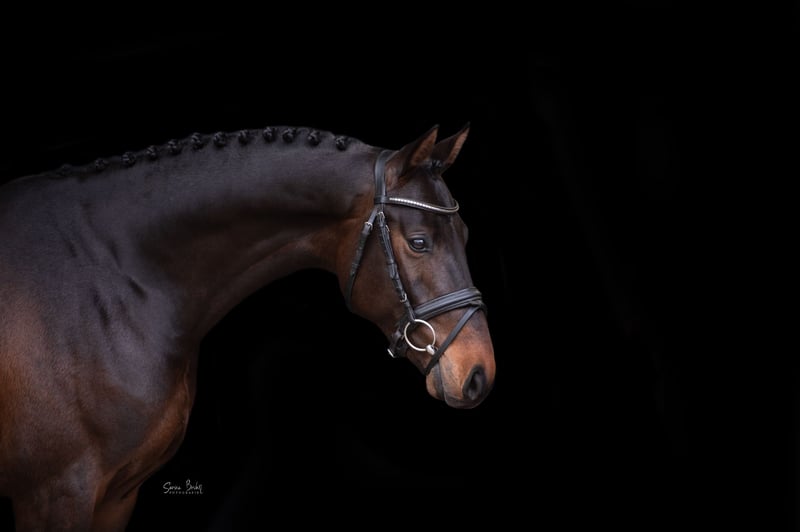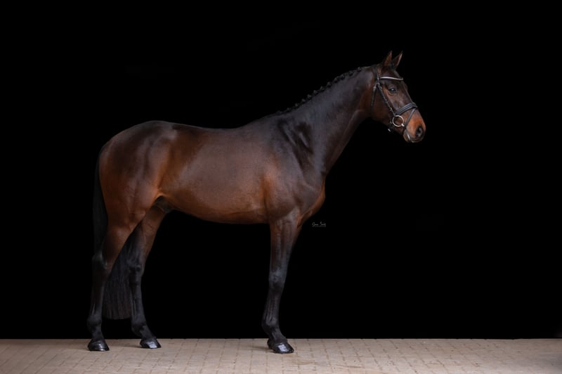 Conley ist ein Junghengst mit dem besonderen „Etwas“: Edel aufgemachtes Gesicht mit großer Augenpartie und stimmigem Exterieur treffen auf Leistungsbereitschaft und Charakter. Am Sprung überzeugt er mit viel Übersicht und Vermögen, in den Grundgangarten mit Fleiß, Gleichmaß und genügend Raumgriff. Durch seinen kompakten Körperbau, starke Oberlinie und korrekte Stellung ist zu erwarten, dass er für viele Stuten als Veredler interessant ist. Ein Hengst, der jeden Tag Spaß an der Arbeit hat und macht. Aktuell sind wir dabei Conley auf seine ersten Springpferdeprüfungen vorzubereiten. Wir freuen uns schon auf unseren gemeinsamen Weg.