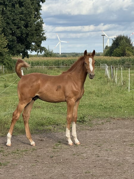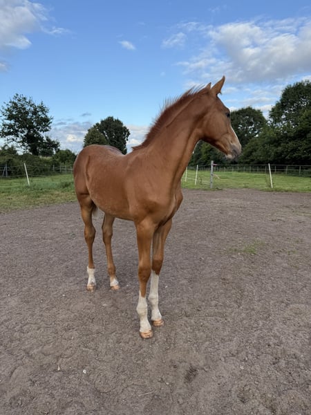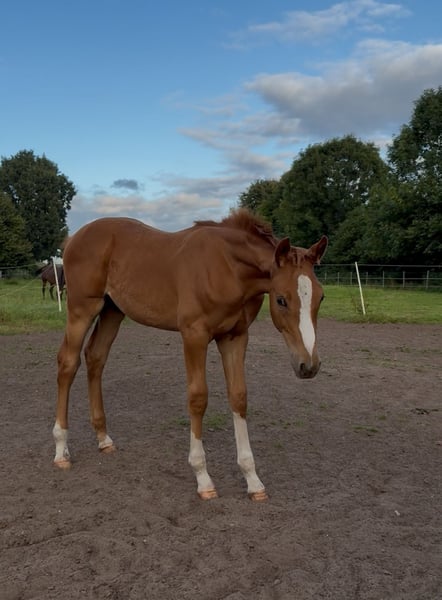 For sale is a promising Holsteiner stallion by Deichkind out of a mother by Amigo xx - Alcatraz - Wildfeuer - Anklang, born in May 2025. This elegant chestnut has great movements and is already very trusting. Expected final height will be around 170 cm. Dam line 318D1. He will be handed over in the fall with a solid foal ABC.