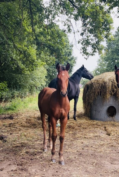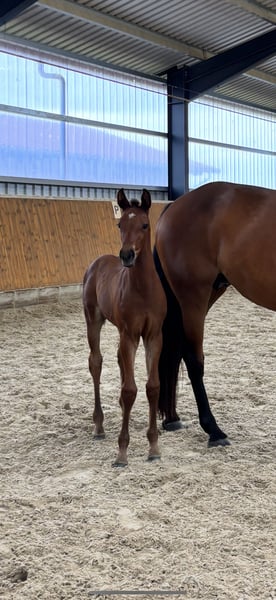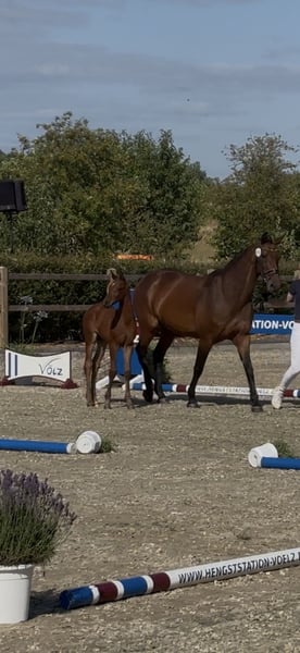 Typvolles Hengstfohlen von Diamant van Klapscheut – Springabstammung der Spitzenklasse Geboren am 29.05.2025 Zum Verkauf steht ein besonders ausdrucksstarkes Hengstfohlen mit erstklassigem Pedigree, sehr gutem Charakter und hervorragender Eigenpräsentation. Abstammung: • Vater: Diamant van Klapscheut, ein moderner, sporterprobter Sohn des legendären Diamant de Semilly, der weltweit zu den führenden Springvererbern zählt. • Mutter: Lands River x Argentinus x Carbid – leistungsstarke und bewährte Mutterlinie mit bester Rittigkeit und Vermögen. Die Mutter wurde mit der Bezirksprämie ausgezeichnet und bringt Vererbungssicherheit mit sich. Ihr erstes Stutfohlen wurde mit der Fohlenprämie prämiert. Beschreibung: Dieses Hengstfohlen überzeugt durch einen edlen Typ, korrektes Fundament und ein auffallend harmonisches Exterieur. Er zeigt drei sehr gute Grundgangarten, eine aktive Hinterhand sowie ein beeindruckendes Auftreten. Besonders hervorzuheben ist sein klarer, menschenbezogener Charakter – freundlich, mutig und neugierig. Ein Fohlen mit Perspektive für den Sport – modern im Auftritt, stark im Ausdruck und mit besten genetischen Voraussetzungen ausgestattet. Weitere Informationen: • Geboren am 29.05.2025 • Das Fohlen wächst artgerecht in einer kleinen, gemischten Fohlengruppe mit Menschenkontakt auf. Es kennt das Fohlen-ABC und ist halfterführig. • Video- und Bildmaterial auf Anfrage verfügbar Standort: 21522 Hittbergen Kontakt: elisa-witschi@web.de Besichtigung nach Absprache jederzeit möglich