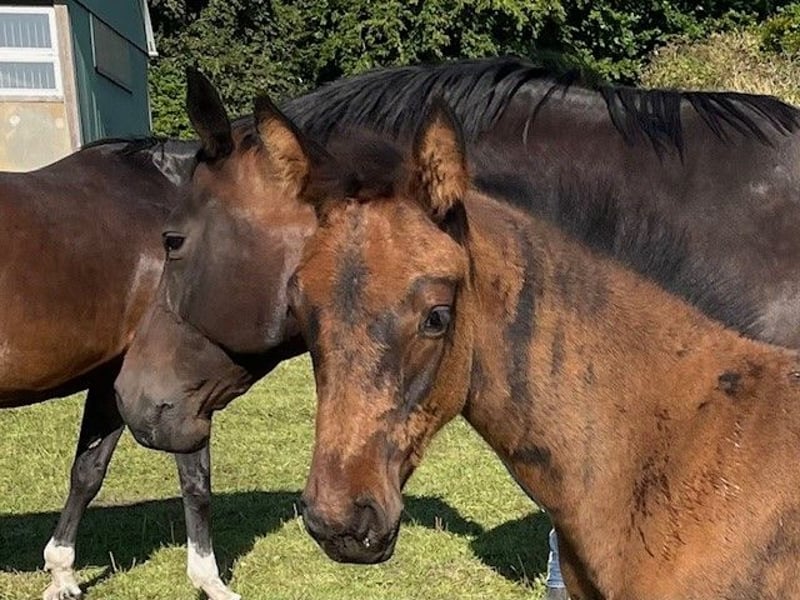 prämiertes Holsteiner Stutfohlen, Stamm 730 b mit besonderen Eltern: Mutter Championatsiegerin 5jährig, danach bis S** im Springen erfolgreich Vollgeschwister der Mutter bis S*** erfolgreich Vater Karlo ist ingezogen auf Atoucha van'T Roosaker. Seine Mutter hat aktuell im S*** gesiegt. Großliniges, bewegungsstarkes Fohlen mit tollem Charakter