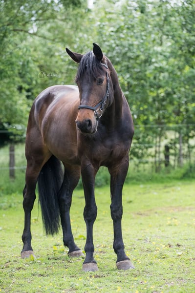 Due to my retirement from competitive riding, I am offering my beautiful 9-year-old Holsteiner mare. This mare not only has stunning looks but also real quality. She was trained at a young age in Germany and competed in classes at 130/140 cm, achieving results in the 120/125 cm range. Here in Belgium, she was shown in 90/100 cm classes, and I have now brought her up to 110 cm. She has also competed in M1/M2 dressage in Germany, where she truly shines in the discipline. In Belgium, she is currently competing in L1/L2 dressage. She is definitely a mare with potential up to 150 cm, given the right guidance. She is very curious about unfamiliar terrain but tries not to make any mistakes. She loads onto a truck very easily, both on a lorry and a trailer, although she is a bit nervous about the trailer and finds it a little more challenging. She is very well-behaved at the farrier, can be shod with or without shoes, and shows no fear of water—she has never been afraid of it. During grooming, she is very gentle and enjoys being brushed. She is also always very calm with the veterinarian and dentist. She loves being groomed and is very easy to handle in all respects. This mare is fully approved and comes with papers. She has already undergone all necessary veterinary, dental, and farrier care. I am giving her the loving forever home she deserves, so no traders or riding schools, please. Would you like to give this mare a chance? Send me a message on WhatsApp at 0470259592. Test rides are possible with a contribution.