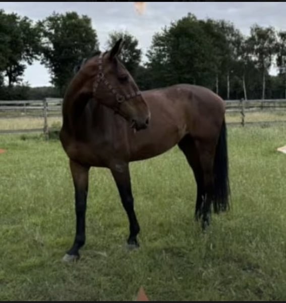 À vendre, cette magnifique jument Holsteiner de 10 ans, de robe baie. !! En raison d'une boiterie inexpliquée sous charge, elle est uniquement proposée en tant que jument de reproduction, jument de compagnie ou cheval de loisir !! Holly est très douce et facile à gérer ! Qu'il s'agisse de balades, de travail à la longe, de mise en van, de maréchalerie ou autre, elle est toujours fiable, amicale et fait de son mieux. Elle s'entend également très bien avec d'autres chevaux. Elle est également très intéressante en tant que jument de reproduction ; plusieurs chevaux de 140/150 cm proviennent de la même mère. Origine Holst Stamm 7022 Elle a elle-même été placée en saut d'obstacles jusqu'à la classe S* à l'âge de 7 ans, avec une très bonne attitude et un bon potentiel ! Elle sera vendue uniquement à de bonnes mains !! Pour toute question ou pour plus d'informations, je reste à votre disposition. N'hésitez pas à me contacter au 0172 3241632.