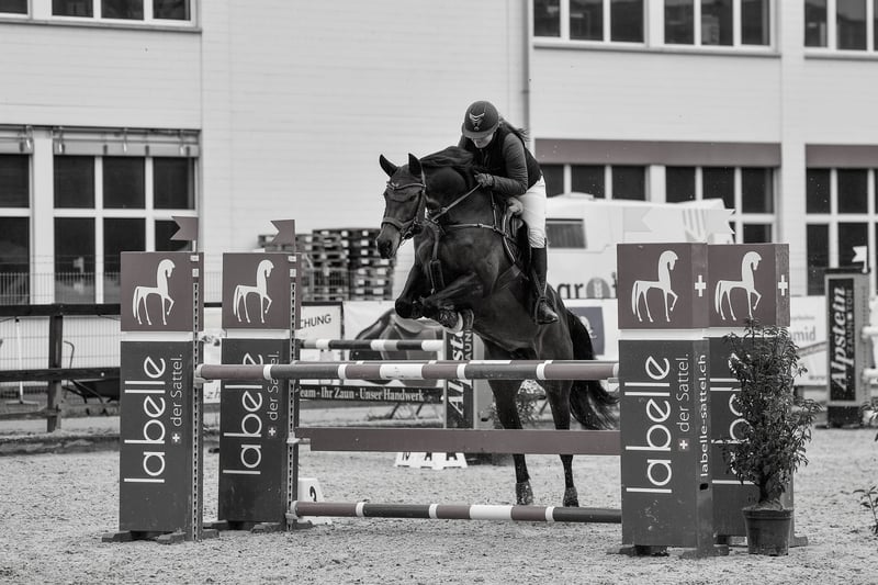 Galaxis is a 12-year-old Holsteiner mare (by Clarimo out of Caribik) seeking a new challenge. She is a blood-type show jumper with experience up to 125 cm and has placed up to 115 cm. Her handling is completely reliable and straightforward. She loves all ground work and is easy to manage in the field. She also loads into the trailer without issues, except in trailers where she tends to move forward with her head first. I am looking for a home where she can be appreciated both as a leisure horse and as a sport horse. Patience is essential, as she can be quite challenging at times. This mare is not suitable for beginners and is better suited for advanced amateurs or someone who enjoys taking on challenges.