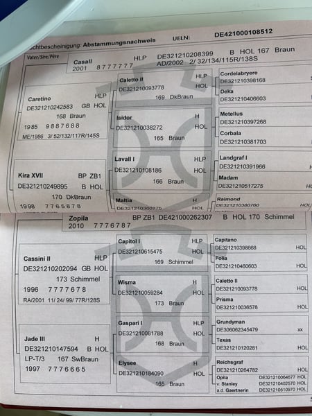 Holsteiner klacz hodowlana po Casall x Cassini II. Linia 563. Wzrost 174 cm. Nagroda regionalna. Urodzona w 2012 roku. Do sprzedaży tylko jako klacz hodowlana, z powodu kontuzji sportowej.