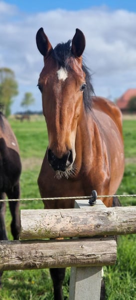 Due to a breeding decision, we are selling our 13-year-old Holsteiner mare (dam line 5330), sired by Uriko x Caretino. She stands approximately 1.75 meters (17.1 hh). A very uncomplicated broodmare, she passes on size and a lot of type. Her offspring all possess lively, relaxed movements and are very talented over fences. The mare has been in our possession for 2.5 years. She is familiar with box and pasture keeping, and, to our knowledge, has not been ridden. She is in excellent health, very robust, and adapts well. Photos 1-3: Mare with her last foal Photo 4: Mare herself Photos 5-6: Mare by Captain Fire (*2017), winner of L, placed in M* Photo 7: Mare by Corniolo (*2020), suitability placed, 4-year-old winner of free jumping class in Dithmarschen Photo 8: Mare by Corfu de la Vie (*2022), second place at 3 years old in free jumping class at Station Maas J. Hell Photo 9: Mare by Keaton (*2023) Photo 10: Mare by Toucento (*2025) Not a desperate sale, price is negotiable. For questions – just get in touch.