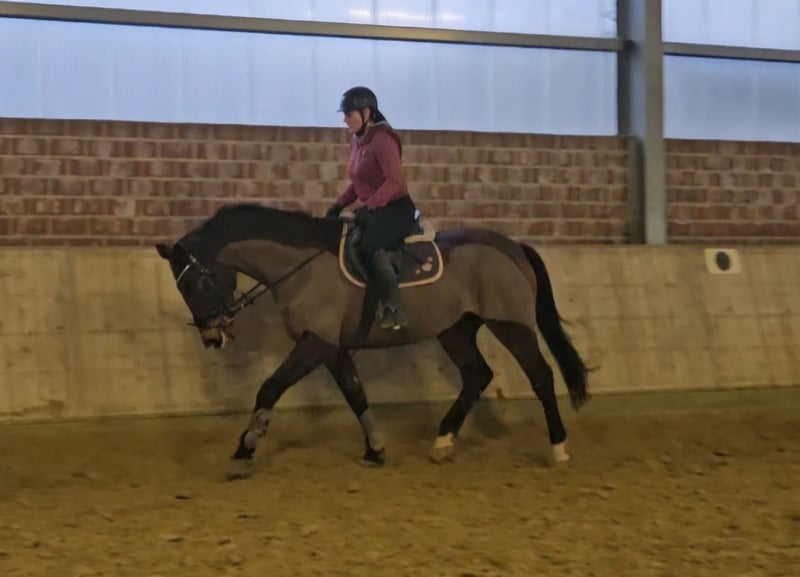 Lotta is a approximately 16.1 hh Holsteiner mare. She is by Carlos DZ out of Cantus, Caletto I / Wonda, Lucky Champ. With a heavy heart, we are offering her for sale due to lack of time. This lovely mare has previously been a school horse for junior riders and has competed several times in E and A show jumping classes, where she has also earned a few ribbons with her young riders. Lotta is a pleasure to ride and consistently reliable under saddle. She truly is a teaching horse — as the saying goes, "she can read and write." :-) We are looking for a final home for her. Despite her 14 years, she is in excellent shape. If you're interested in videos, please contact us directly via WhatsApp at 0177/2721831, and for more information, feel free to call.