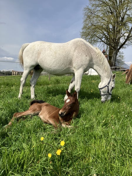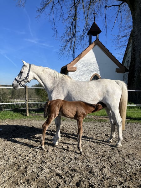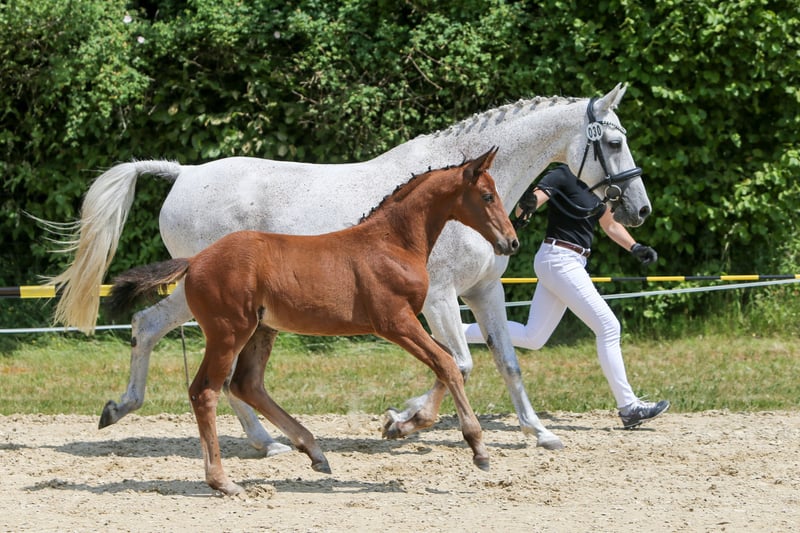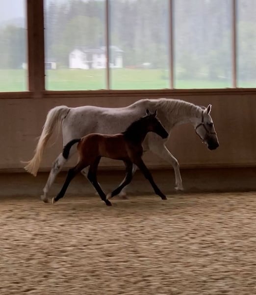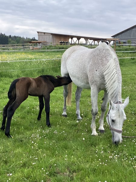 Ze względu na okoliczności poszukujemy dla naszej doświadczonej klaczy hodowlanej rasy Holsztyn nowego, wspaniałego domu. Do tej pory zawsze była łatwa w obsłudze, nie miała żadnych problemów z ciążą, porody przebiegały bez komplikacji, a źrebięta do odsadzenia rozwijały się bezproblemowo. Jest bardzo przyjazna i łagodna, pozwala na prowadzenie przez dzieci, można ją dotknąć wszędzie, zna pastwisko i boks, i po prostu lubi być w towarzystwie. W stajni stanowi prawdziwą oazę spokoju dla innych, dzięki swojej opanowanej naturze w grupie zwykle zajmuje wyższą pozycję. Sama osiągnęła sukcesy w skokach do 1,20 m, prezentując się z elegancją na konkursach, co czyni ją również spokojną podczas transportu i w obcych miejscach, takich jak pokazy źrebiąt. W ostatnich latach nie była już użytkowana do jazdy i jest sprzedawana wyłącznie jako klacz hodowlana. W zeszłym roku, po wielu latach opieki nad źrebiętami, zasłużyła na przerwę, więc ją zaprzestaliśmy kryć, ale w każdej chwili można ją ponownie zapłodnić. Potomstwo z ostatnich trzech lat można chętnie obejrzeć; wszystkie młode są niezwykle przyjazne, odważne i z dużą radością galopują.