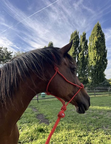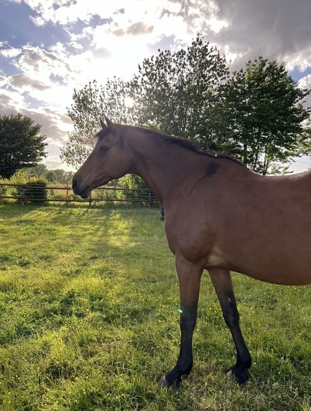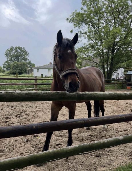 Ich suche ein Für-immer-Zuhause für meine 15-jährige Herzensstute Bonnie als Freizeit- oder Beistellpferd, da sie nur noch bedingt reitbar ist (keine Zucht!!!). Sie hatte vor ca. 2 Jahren mehrere kleinere Sehnenschäden und genießt seitdem ihr Leben mit 24/7 Wiese und Gesellschaft. Neben gemütlichen Ausritten ab und zu freut sie sich über jede Art von Beschäftigung und kennt Kinder, Hunde, Straßen, Fahrradfahren (natürlich NEBEN dem Fahrrad ;P), Handarbeit, Equikinetic, ausgedehnte Spaziergänge, Schwimmen im See, Extreme Trail, Zirkustricks, und und und. Ich wünsche mir für Bonnie einen Platz auf Lebenszeit mit Familienanschluss, wo sie weiterhin einfach Pferd sein und sich den Bauch mit Gras vollschlagen darf, zwischendurch aber auch immer mal beschäftigt und gefordert wird. Sie LIEBT es, ausgiebig betüddelt zu werden und ist einfach ein ganz außergewöhnlich sensibles, soziales, verträgliches, lustiges und menschenbezogenes Pferd - eine echte „Partnerin in crime“. Mit ihren 1,70 ist sie aber auch nicht gerade klein und kein reines Kinderpferd - vor allem, wenn wieder pferdefressende Monster im Wald unterwegs sind ;). Bonnie hat selbstverständlich einen Pass, ist regelmäßig geimpft, entwurmt und von Zahnarzt und Osteo durchgecheckt. Da sie sehr leichtfuttrig ist braucht sie 24/7 Heu und/oder Wiese und aufgrund der Sehnen-Vorgeschichte und einer Fehlstellung benötigt sie vorne Hufeisen. Bonnie steht aktuell in einer Herde mit ca. 20 Pferden, Wallachen und Stuten allen Alters. Dort ist sie bekannt für ihre extrem freundliche und liebe Art zu allen Pferden und Menschen. Genauso sehr liebt sie es aber auch, über die Wiesen zu galoppieren und die Sau rauszulassen. Vom Rang her ist sie irgendwo in der Mitte. Schmiede- und verladefromm ist sie natürlich auch. Meldet euch bei ernsthaftem Interesse gerne für weitere Infos und ein erstes Kennenlernen (Bonnie wohnt nördlich von Köln)! :)