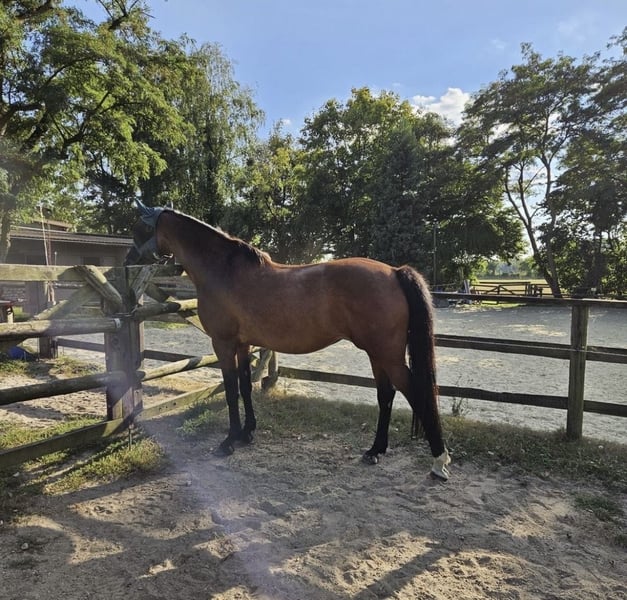 Poszukuję na zawsze domu dla mojej 15-letniej, ukochanej klaczy Bonnie, jako koń rekreacyjny lub towarzysz, ponieważ jest już tylko częściowo jeździeczna (bez hodowli!!!). Około dwa lata temu miała kilka drobnych urazów ścięgien, od tego czasu cieszy się życiem na pastwisku przez 24/7 i w towarzystwie. Oprócz relaksacyjnych przejażdżek od czasu do czasu, chętnie angażuje się w różne formy aktywności i zna dzieci, psy, ruch uliczny, jazdę na rowerze (oczywiście OBOK roweru ;P), rękodzieło, Equikinetic, długie spacery, pływanie w jeziorze, Extreme Trail, sztuczki cyrkowe i wiele więcej. Marzy mi się dla Bonnie miejsce na całe życie z rodziną, gdzie będzie mogła nadal być po prostu koniem i paść się trawą, ale też będzie miała okazję do zabawy i wyzwań. Uwielbia być głaskana i troskliwie traktowana, jest niezwykle wrażliwa, towarzyska, łagodna, towarzyska, zabawna i bardzo przywiązana do ludzi – prawdziwa „partnerka w crime”. Z jej 1,70 m wzrostu nie jest też mała i nie jest końcem dla dzieci – szczególnie, gdy w lesie znów czają się potwory ;). Bonnie posiada oczywiście paszport, jest regularnie szczepiona, odrobaczana i była badana przez dentystę oraz osteopatę. Ze względu na jej łatwość w jedzeniu i wcześniejsze urazy ścięgien, potrzebuje 24/7 siano i/lub pastwisko, a ze względu na wcześniejsze urazy i niewłaściwą ustawienie stóp, konieczne są jej podkowy przednie. Obecnie przebywa w stadzie około 20 koni, w tym ogiery i klacze w różnym wieku. Jest znana z bardzo przyjaznego i kochającego usposobienia wobec wszystkich koni i ludzi. Uwielbia też galopować po pastwiskach i się wyszaleć. Jeśli chodzi o rangę, jest gdzieś pośrodku. Jest też spokojna w trakcie czyszczenia i załadunku. Jeśli jesteś poważnie zainteresowany, chętnie udzielę więcej informacji i umówię się na pierwsze spotkanie (Bonnie mieszka na północ od Kolonii)! :)