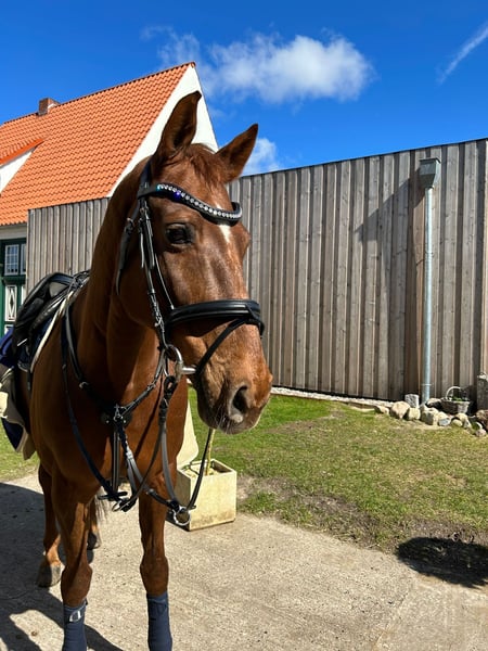 Zum Verkauf steht die 17-jährige Holsteiner-Stute „Tiara“ von C-tentron Z/ Newton/ Cassini I/ Ratibot. Tiara ist eine Stute die gefallen möchte, rittig ist und gerne arbeitet. Tiara hat A/L-Springen gewonnen, sowie diverse Platzierungen. Sie ist nicht guckig und verfügt auch über genug Vermögen, freut sich aber viel mehr über andere Aufgaben (Dressur, Ausreiten, Bodenarbeit). Da sie solide GGA vorweisen kann, ist sie sicher auch im Dressurviereck ein Hingucker. Charakterlich ist sie dem Menschen total zugewandt und unheimlich dankbar , schlau und für jeden Blödsinn zu haben. Selbstverständlich ist sie Schmiede-und Verladefromm, absolut verkehrssicher , geht alleine und in der Gruppe ins Gelände. Ein absoluter Allrounder. Derzeit hat Tiara eine längere witterungsbedingte Winterpause hinter sich und wird „angeschoben“. Probereiten ist kein Problem. Sie kennt sowohl Offenstallhaltung, als auch Box mit Weidegang.