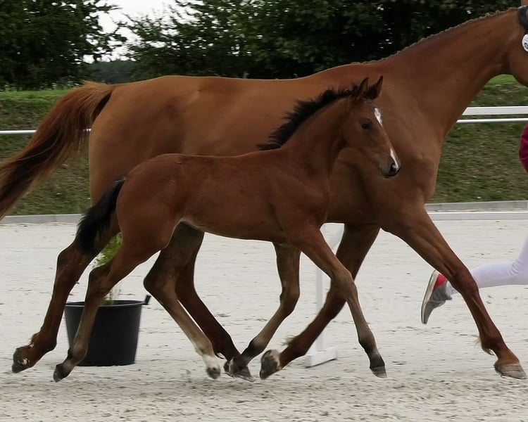 This outstanding filly achieved reserve champion status at the Holsteiner Foal Show in Ladeburg and is thus qualified for the Holsteiner State Championship in Elmshorn. She is among the best foals of her age group! The mare is bred with a focus on dressage and possesses three very good basic gaits. Particularly noteworthy is her excellent trot: elastic, ground-covering, with powerful push-off and always in rhythm. She is correctly built, beautiful, curious, and always friendly in handling. A horse for the future! With her uncomplicated nature and high-quality lineage, she is the ideal young horse for ambitious amateurs as well as for professional sport. Completely healthy, from a renowned breeder with optimal care, correctly dewormed and presented to the farrier. We look forward to your interest and would be happy to show you the foal on-site! Contact us also via WhatsApp: +49 176 55323449. The sire of this special foal is the Dutch shooting star Extreme US (Stallion Station van Uytert/Paul Schockemöhle). Extreme is a highly rated movement stallion with outstanding rideability (dream score of 10) and impressive achievements: winner of his stallion performance test, winner of the Pavo Cup 2023, winner of the KWPN Stallion Competition 2023/2024. His offspring include numerous winning foals, championship foals, and spectacular auction foals. The maternal lineage of our sales foal goes back to the founding sire Vivaldi and the sought-after jumping blood of C-Indoctro in the Holsteiner performance line 474a. This line is characterized by the international caliber of its many successful horses.