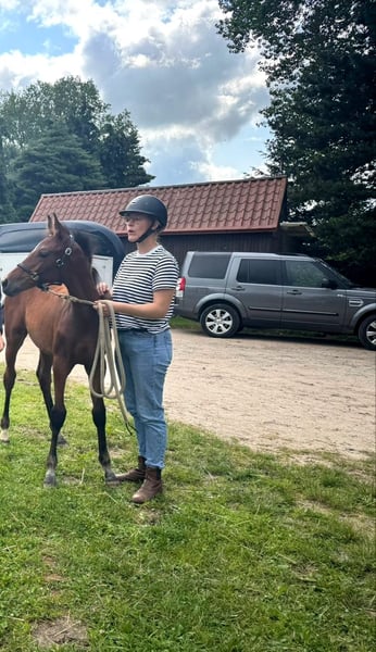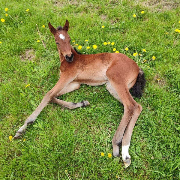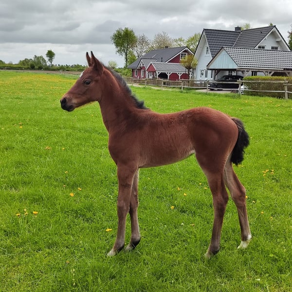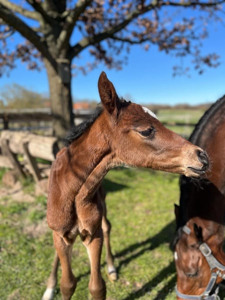 Typical filly for sale from successful mare line 6788. Thalea was born on April 5, 2025, and is out of the full sister to Carjatan S (Clearway x Galant Vert xx), who was part of the Olympic Games 2024 and the World Championships 2022 under Christoph Wahler. Thalea is lively, curious, and confident in handling. She is currently learning the basics of being a foal. She is correctly built. A transfer is possible after weaning. We wish for Thalea a loving and supportive home with a view towards a sporty future. If you are interested, we look forward to receiving a message or a call. CONTACT: Romy Köster Tel.: +49 176-72206899 E-Mail: romy_hinz_reese@yahoo.de