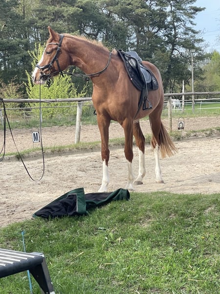 Wir verkaufen unsere selbst gezogene 3jährige. holsteiner Stute. Sie ist als Fohlen prämiert und ist eine sehr ausdrucksstarke Nachwuchsstute , sie ist sehr menschenbezogen und sehr artig. Sie war noch nie krank , die Anfänge mit ihr sind gemacht und sie zeigt sich lernwillig. Aus Altersgründen und keinem passenden Reiter für sie würden wir sie abgeben. Bei ernsthaften Interesse bitte alles weitere per Telefon oder vor Ort.