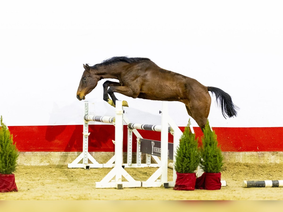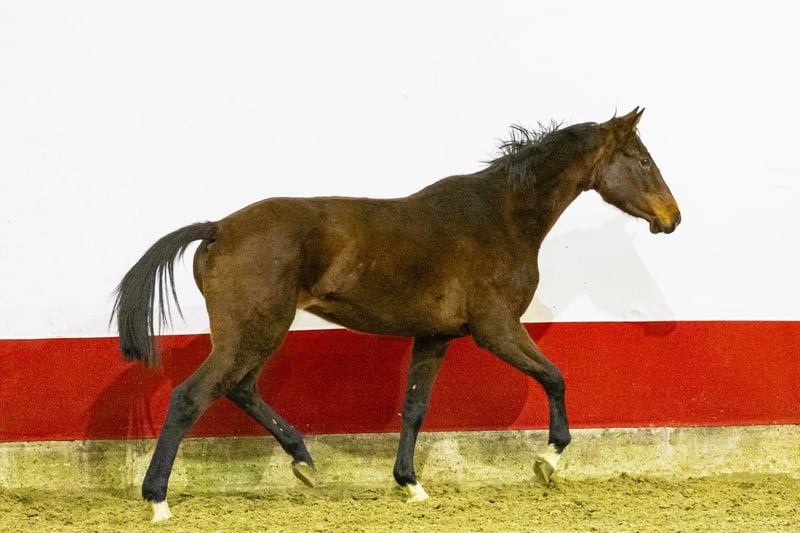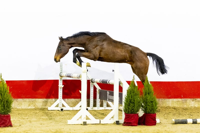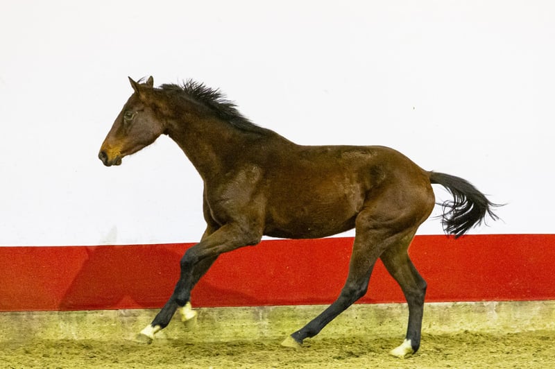 Corina is a beautiful dark brown, still youthful and long-lined mare with a light-footed way of moving. She jumps very well with her legs and shows a correct and quick technique. In motion, she displays a nice, carrying trot and a canter that shows balance and suppleness. Her jumping style is light, with a good take-off and correct use of her body, making her an interesting young prospect for the future. Her sire Carmarino VA, by Casall, is approved with Holstein and OS and competed himself up to 1.25 m level. He is known for passing on modern types with technique, mentality and good movement. Grandsire Casall competed at 1.60 m Grand Prix level and is one of the most influential sires in modern showjumping. The damline is very well proven. Dam Cumera, by Quantum, descends from a family that has produced sport horses for generations. The damline includes multiple horses that competed above 1.30 m level, such as GK Romy at 1.60 m, GK Casper successful at 1.60 m level, GK Quozient at 1.45 m, GK Quentin at 1.60 m and Fiona Harteveld competing at 1.40 m. The family also produced approved stallions, underlining the reliability of this line for sport and breeding Corina combines a youthful appearance, good technique and a light way of going with a proven performance pedigree, offering strong prospects for further development in sport.