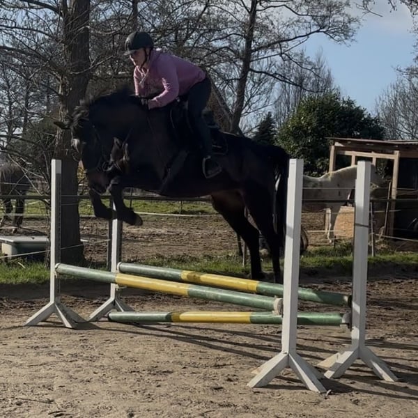 Zum Verkauf steht direkt vom Züchter unsere 4 jährige schwarzbraune Stute Pinuu. Aufgrund von Nachzucht sucht dieses talentierte „Spaßmobil“ ein neues Zuhause mit entsprechender Förderung. Pinuu ist im Herbst 2025 angeritten, wurde über den Winter nur sporadisch bewegt. Seit knapp 2 Monaten wird sie nun wieder regelmäßig 2-4 Tage die Woche altersentsprechend gearbeitet. Sie zeigt sich immer motiviert und ist sehr menschenbezogen. Dem Reiter gibt sie durchgängig ein gutes Gefühl und präsentiert sich sehr rittig. Derzeit steht sie im Offenstall, kennt aber auch Box. Im Sommer bislang immer 24/7 Weide. Läuft barhuf. Es gibt Röntgenbilder aus 03/25 ohne Befund, können bei Interesse eingesehen werden. Turnierkonform geimpft. Die Zukunft von Pinuu liegt sicher im Parcours, hier zeigt sie viel Vorsicht und Gummi bei ihren ersten Sprüngen. Interessanter Nachwuchs für den Sport bei entsprechend weiterer Förderung. Auch für die Zucht Interessant: Ihre Mutter brachte einen gekörten Sohn von Cascadello sowie weitere NK bis 1,50m platziert. Mutter sowie weitere Geschwister (von Million Dollar, Esmeraldo und Crunch) können vor Ort besichtigt werden.