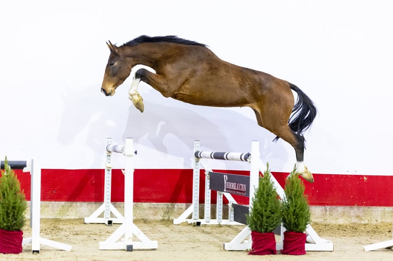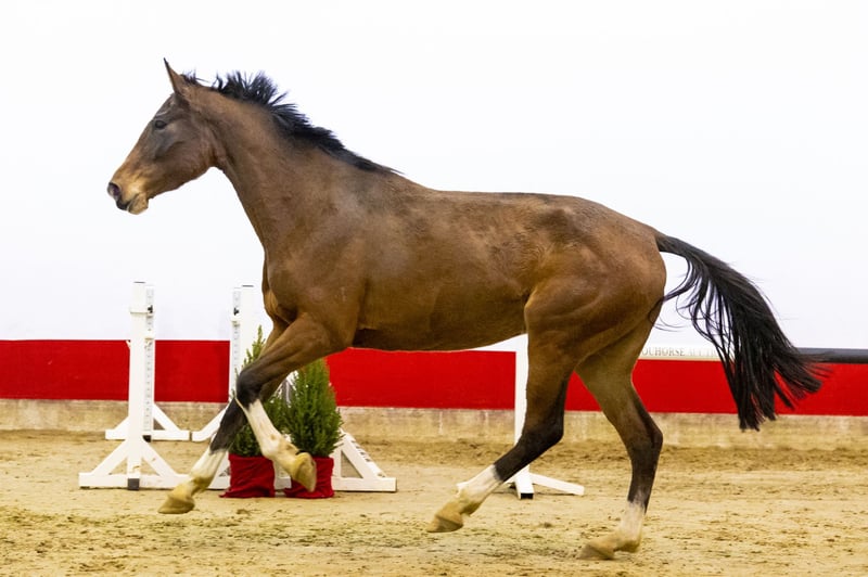 Fantastique is a beautiful, large-framed mare with an exceptionally good canter. She jumps with lightness, scope and quick reflexes. She moves freely and elastically through her body, combining her size with athletic ability. Being still young, she offers plenty of room for further development, making her an exciting sporthorse for the future. Her sire Forino, the young For Pleasure son already competing at 1.45m, is proving to be not only talented in sport but also an interesting producer. The damline is equally strong, having produced several 1.45m horses and licensed stallions such as Chinchero and Camerino VA. It is a proven performance family with value for both sport and breeding. Fantastique comes from one of the largest and most reputable sporthorse breeders in Germany. She is completely unbroken and knows no more than a halter. Having spent her life in the field so far, she has had the time to grow correctly and develop strength in her body and legs. An honest and pure mare ready to start her training. With her type, scope and strong pedigree, Fantastique offers significant potential — both as a sporthorse and as a future broodmare.