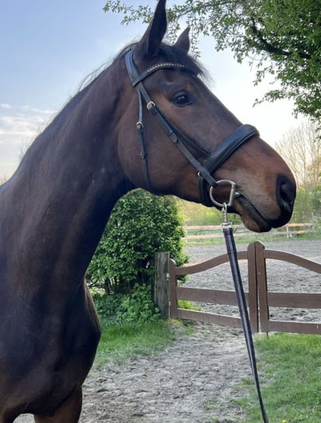 From our Holsteiner breeding program, we are offering a 4-year-old mare by Origi d' O out of a sport-successful mare by Contendro I (with Barnaul XX, a thoroughbred, behind). Her dam has competed successfully up to S* show jumping, with multiple wins in M* and M** classes, and was qualified for the Bundeschampionate in Warendorf at age six. She is equipped with three excellent gaits, with the trot being particularly outstanding. Her current height is approximately 16.2 hh. Olympia is still in her early training. Due to her large size, we have given her plenty of time to develop calmly. She possesses great potential, and thanks to her good gaits, she could also be well-suited for dressage. In terms of type, she now requires a loving, patient, yet consistent handler who allows her enough time to adjust to new tasks without overwhelming her. She is very gentle and friendly in character, but also knows how to use her size and strength when needed. An ultrasound examination can be performed at any time. Videos are available upon request.