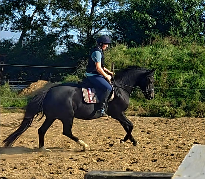 ☆ Priorité au caractère plutôt qu’au prix ☆ Je propose à la vente ma magnifique petite jument holsteiner de 4 ans, issue de Fidano x Quintero/Lorentin. Née chez nous, elle mesure actuellement 1,53 m. Elle a été doucement monté cet été et se montre très volontaire à l’apprentissage. Ce n’est pas une vente d’urgence, mais en raison de la naissance de notre second enfant, je réalise que je ne peux pas lui consacrer autant de temps qu’elle en aurait besoin. Ceux qui recherchent un partenaire exceptionnel seront sûrement comblés avec cette jument, car elle est vraiment obéissante en main, au maréchal-ferrant et lors du chargement. Étant donné son âge, ce n’est pas une monture pour débutants, mais ceux qui souhaitent une jument talentueuse trouveront ici une partenaire formidable. Je reste à votre disposition pour toute question. Elle se trouve en Schleswig-Holstein / Nordfriesland. Pour une séance d’essai ou de pré-vente, une somme de 25 € sera demandée, qui sera bien sûr remboursée en cas d’achat. Une échographie peut être réalisée à la charge de l’acheteur intéressé. D’autres vidéos peuvent volontiers être réalisées et envoyées. La jument vit en paddock avec deux autres juments et un hongre.