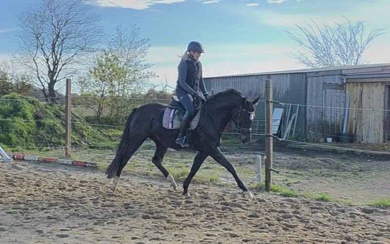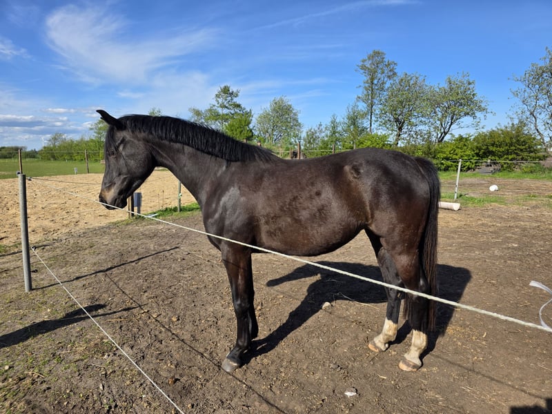 ☆Prioritizing Character over Price☆ I am offering my lovely, small 4-year-old Holsteiner mare by Fidano out of Quintero/Lorentin for sale. She was born here and is currently 15.3 hh. This summer, she was gently backed and has shown herself to be very eager to learn. This is not an emergency sale; however, due to the birth of our second child, I realize I cannot give her the attention she now needs. Anyone looking for a wonderful partner will surely be happy with this mare, as she is very well-behaved in handling, at the blacksmith, and during loading. Given her age, she is not suitable for beginners, but anyone interested in such a talented mare will find a fantastic partner here. Please feel free to contact me with any questions. Location: Schleswig-Holstein/North Frisia A €25 fee applies for a pre-ride or trial ride, which will be refunded upon purchase. A veterinary examination (AKU) can be arranged at the buyer’s expense. Additional videos can be created and sent upon request. The mare is kept in an open stable with two other mares and a gelding.