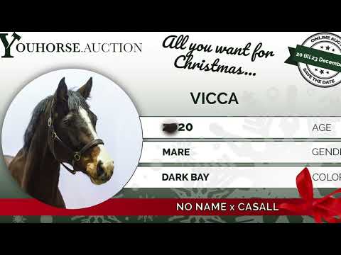 Vicca is a modern, light-footed mare with a strong hindleg and correct jumping technique. She shows quality, blood and a natural engine. She is quick off the ground and demonstrates a clean, correct push at the jump. A promising sport mare who can continue to grow with training and experience. Her sire is unknown due to an accidental covering in the field, but she comes from a highly reputable breeder — a clear indication that the sire’s genetics are likely to be strong as well. Ultimately, Vicca speaks for herself: her dam Casaltinajumped 1.45m, and those athletic qualities are clearly visible in this mare. Vicca comes from one of the largest and most respected sporthorse breeders in Germany. She is completely unbroken and knows no more than a halter. Until now she has lived only in the field, giving her time to grow correctly and develop strength in her body and legs. An honest and pure young mare who is now ready to begin her training. With her type, natural talent and proven damline, Vicca offers significant potential — both as a sporthorse and as a future broodmare.