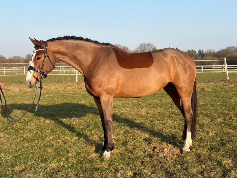 Elegante Holsteiner Stute – Vielseitig einsetzbar für Dressur, Springen oder Vielseitigkeit. Diese wunderschöne braune Holsteiner Stute wurde im Jahr 2021 geboren und besticht durch ihre beeindruckende Größe von 171 cm. Sie ist ein echtes Dressur-Talent mit viel Potential, um sich zu behaupten. Ebenfalls zeigt sie viel Übersicht und Vorsicht am Sprung. Sie kennt bereits Außenplätze, Ausritte oder auch Wiesen und Felder. Mit ihrem ausgeglichenen Charakter und ihrer gut gerittenen Grundausbildung zeigt sie eine elegante, flüssige Bewegungsführung und eine ausgezeichnete Grundqualität. Sie ist vorsichtig und nachhaltig ausgebildet worden. Die Stute ist gesund, robust und besitzt eine solide Anatomie, die sie für den ambitionierten Turnierreiter oder Züchter gleichermaßen interessant macht. TÜV ist vorhanden und ohne Befunde. Sie ist freundlich im Umgang, leicht zu reiten und zeigt stets eine hohe Lernbereitschaft. Ihr charakterstarkes Wesen und ihre beeindruckende Erscheinung machen sie zu einem echten Blickfang. Diese Holsteiner Stute bietet ein enormes Entwicklungspotential und ist bereit, ihre nächsten Schritte im Dressur- oder Springsport zu gehen. Für erfahrene Reiter, die eine talentierte Partnerin suchen, ist sie eine vielversprechende Wahl. Bei Interesse stehe ich gerne für weitere Informationen und eine Besichtigung zur Verfügung.