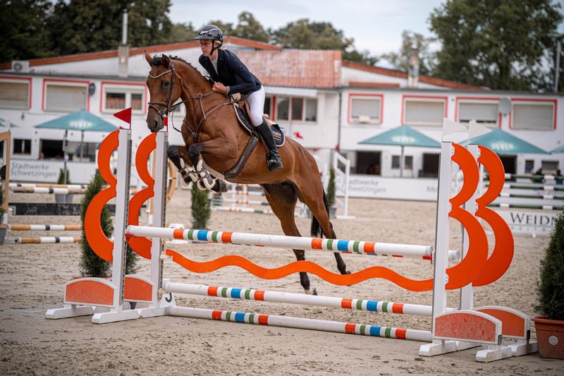 Luna was ridden late in her training but has developed well in her education. At 5 years old, she has completed her first season, achieving wins and good placings in Jumping Horse A* and A**. She is very eager to learn and shows caution at the jump, with jumping ability suitable for more than just A and L jumping classes. The mare should continue to be supported to fully showcase her sporting potential. Luna is well-behaved under the rider, in the field, and in handling – including with children. She has a current health certificate with X-ray images from September 24, 2025. The X-rays show no findings.
