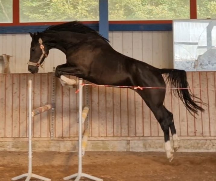 For sale: an elegant Holsteiner mare, born in 2020. This impressive black mare measures 172 cm at the withers and captivates with her striking appearance and promising pedigree. She is ideally suited for an ambitious rider or breeder who values quality and potential. I am happy to provide further information and arrange a viewing upon request. She is in foal to Crack (winner of the Bundeschampionat in Warendorf). Crack competes internationally in show jumping up to 160 cm and has achieved 5-star success under Richard Vogel. Foal expected in April 2026.