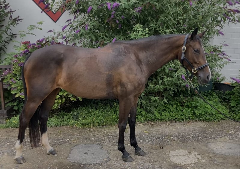 **Sales Advertisement: Holsteiner Mare** For sale is a friendly Holsteiner mare, born in 2019. She impresses with her balanced character and willingness to learn, making her an ideal partner for ambitious riders. However, due to her later start, she is still quite green and should be sold to nurturing hands. The mare is at the beginning of her training and has already gained some experience in the jumping course. For further information or to arrange an appointment, please feel free to contact me.