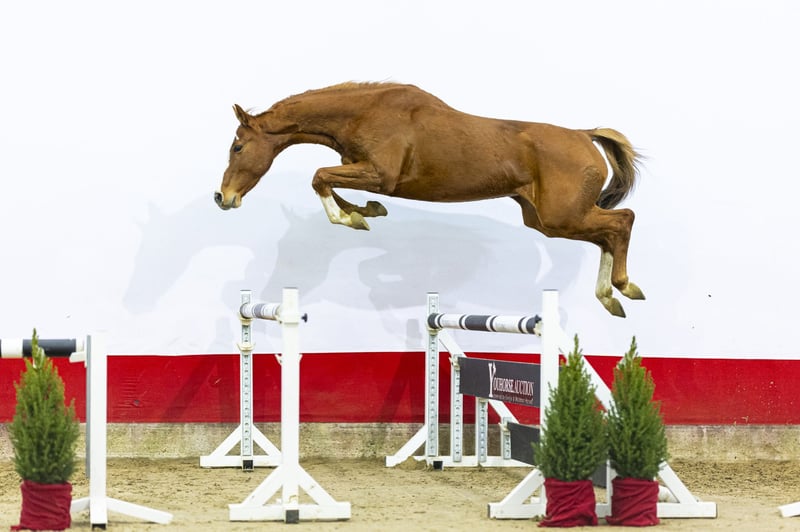 Cenna is a light-footed mare with a good take-off and a good jumping technique. She shows quality, scope and good body use. She has an attractive model and a nice jump finish, making her particularly interesting for modern sporthorse breeding. Her sire Casaltino competed successfully at 1.45m level and is known for producing horses with rideability and strong sport mentality. Her dam produced, among others, the 1.60m Grand Prix horse Rock d’Enfer, confirming the strength of this performance family. Cenna also comes from the same valuable line as Coriano, an influential sire and producer of international Grand Prix horses. Cenna was bred by one of the largest and most reputable sporthorse breeders in Germany. She is completely unbroken and knows no more than a halter. Having lived only in the field, she has grown correctly and developed strength in her body and legs. Cenna is offered as a broodmare. She has never had a foal and has never been bred. With her type, movement, jumping manner and strong pedigree, she holds significant value for breeding and for strengthening a performance damline.
