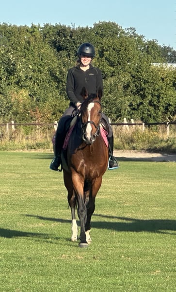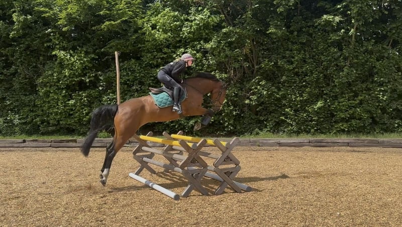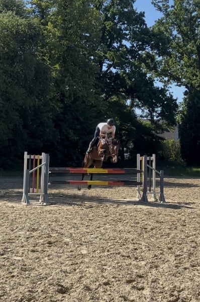 Elegant Holsteiner mare with excellent pedigree – ideal for show jumping enthusiasts with tournament ambitions and young riders. This beautiful dark bay Holsteiner mare was foaled in 2019 and measures 16.1 hands. With her strong conformation, she is well-suited for high-level show jumping as well as for ambitious leisure riders. "Fantasia" has a balanced temperament and remains completely unflappable. Whether at competitions, hacking out, around dogs, children, or tractors – she is never headstrong or inattentive, even when ridden alone in the field. She also has no vices such as bucking, rearing, or bolting, making her perfect for less experienced riders. In training, we have already jumped up to M-level with her. She has been presented at A** level in competitions. Under saddle, she is always motivated and very eager to learn. She possesses an outstanding jumping talent, is attentive, and quick to learn. The mare shows great potential and can comfortably carry larger riders. Priority over price! For inquiries: 015154729697