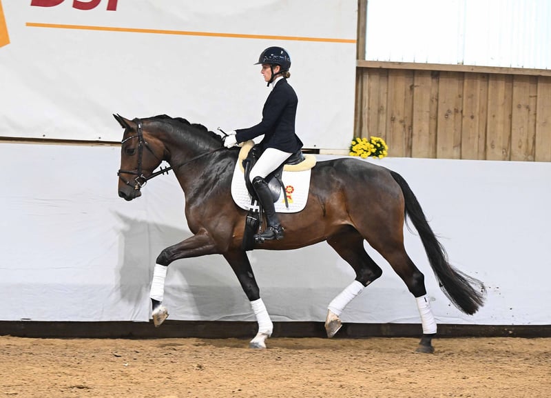 Ecco la collezione e la registrazione online: https://auktion.pzvbw.de/auctions IVA 0 % Maga di movimento e salto, da una famiglia di prima classe. La sua madre, vincente nel settore del concorso completo, ha prodotto quattro cavalli da salto internazionali con successi fino a 1,60 m. Dopo aver avuto due puledri, ha completato la sua prima stagione di gare. Vincitrice in prove di salto, piazzata in prove di dressage e di cross-country per giovani cavalli.