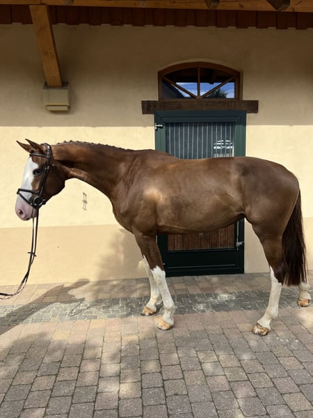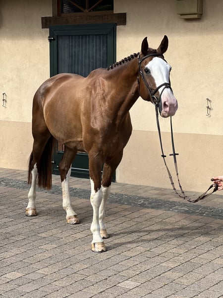 Zum Verkauf steht eine 6-jährige Fuchsstute mit interessanter Abstammung (Casall x Acodetto), die bereits erfolgreich auf Turnieren in Springpferdeprüfungen der Klassen A und L vorgestellt und platziert wurde. Auch in dieser Saison konnte sie bereits Turniererfahrung sammeln. Die Stute ist sehr triebig und zeigt beim Springen durchaus Vermögen, kann dabei aber auch „klotzig“ sein. Im täglichen Training sowie zu Hause gestaltet sich die Arbeit mit ihr teilweise anspruchsvoll – es kann vorkommen, dass sie einen Sprung nicht direkt beim ersten Anreiten überwindet. Auf Turnieren hingegen zeigt sie sich bislang deutlich zuverlässiger. Aufgrund ihres Charakters und ihrer Art sehen wir ihre Zukunft weniger im gehobenen Springsport. Vielmehr können wir uns gut vorstellen, dass sie im Voltigiersport oder bei einem sehr erfahrenen, konsequenten Reiter, der bereit ist, Zeit und Arbeit zu investieren, ihren passenden Platz findet. Die Stute wird ausschließlich in beste und erfahrene Hände abgegeben. Kein Anfängerpferd! Bei ernsthaftem Interesse freuen wir uns über eine Nachricht. Weitere Infos gerne telefonisch unter der +49 170 6869785.