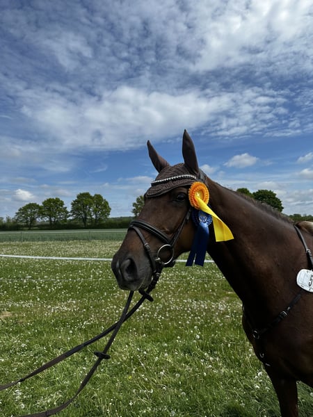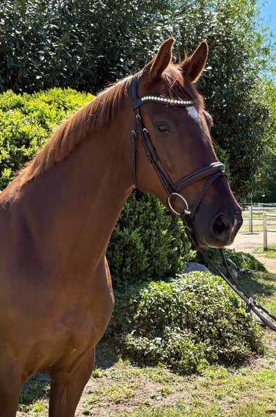 For sale is a 6-year-old mare by Kiritan out of Carpaccio, demonstrating honesty and a strong work ethic as a sport partner. She was backed late but is now competing up to A* level and impresses with her enthusiasm and energy over fences. In daily handling, she is very well-behaved and straightforward – whether in the field, at the blacksmith, or during loading, she approaches everything confidently. In dressage, she is very easy to ride. Over fences, she shows courage, motivation, and caution. A fantastic young mare for riders seeking a sporty and honest horse.