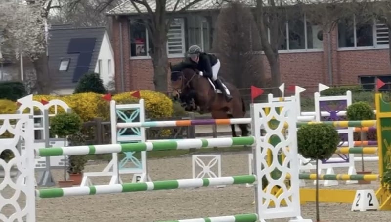 This exceptional mare is a true all-rounder. She has competed successfully in show jumping up to 1.30 meters and has also proven herself in the terrain. She is equipped with plenty of energy and an incredible will to perform. She is completely fearless and always highly motivated. Please feel free to contact us with any questions. 01772409954