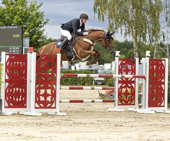 Na sprzedaż 7-letnia klacz holsztyńska o doskonałym pochodzeniu (Casall x Colman). Klacz jest plasowana do 1,25 m i ma jeszcze duży potencjał do wyższych zadań. Jest bardzo grzeczna, chętna do pracy i bezproblemowa, co sprawia, że nadaje się zarówno do rozpoczęcia jazdy, jak i dla osób przesiadających się oraz ambitnych początkujących. Dzięki swojej uczciwej naturze i chęci do pracy sprawia codziennie radość pod siodłem, a jednocześnie oferuje możliwość dalszego szkolenia w wyższym sporcie. Również w codziennym obcowaniu jest niezawodna – jest podkuwana i transportowana bez problemów, zawsze pokazując się jako bezproblemowa. Klacz łączy w sobie jakość, zdolności i wspaniały charakter, jest wszechstronnie użyteczna – czy to jako bezpieczne konie sportowe, czy jako partner z perspektywami. Aktualny przegląd weterynaryjny jest dostępny i bez zastrzeżeń. Do oddania z powodu redukcji stada. Dalsze informacje i filmy chętnie na życzenie.