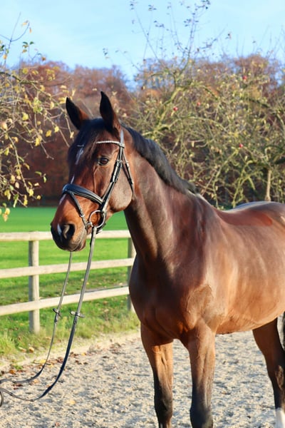 Verkauft wird 8 jährige Allrounder Stute. Alma wird als besseres Freizeitpferd verkauft. Zu Hause springt sie einen sicheren A/ L- Parcours, beherrscht fliegende Galoppwechsel und läuft sicher in der Anlehnung in allen drei Grundgangarten. Auch im Gelände ist sie brav und hat einen tollen Charakter. Ihr Stockmass ist 1.73m. Sie ist Schmiede- und verladefromm und natürlich gesund, kein Koppen, Weben etc.