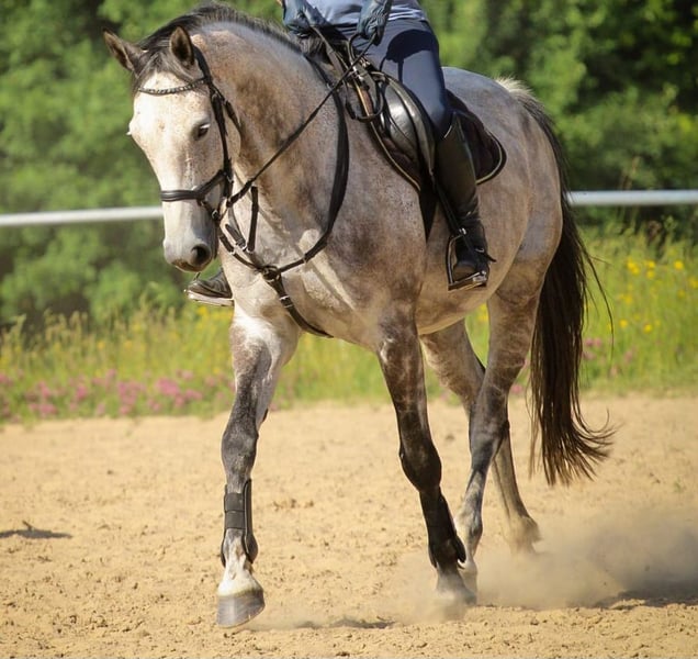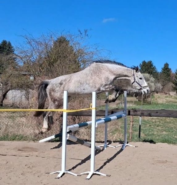 Hallo. Ich verkaufe diese 9 jährige, 168 cm große, Holsteiner Stute als solides Freizeitpferd. Unerschrocken und artig kann man mit ihr Spaß haben und auch Kinder drauf reiten lassen. Sie lebt in Robusthaltung, d. h. 24/7 draußen, 365 Tage im Jahr und ist relativ unverbraucht, da sie erst später intensiver gefördert wurde, was auf fehlende Zeit zurückzuführen war. Sie lief ein paar kleine Springen auf Turnier und wird derzeit für die aktuelle Saison vorbereitet. • verladefromm • überwiegend barhuf • derzeit wg Turniersaison beschlagen • im Turnierrhythmus geimpft • quartalsweise entwurmt Vielleicht auch für die Zucht interessant (Stamm 2554), hatte bis dato aber noch kein Fohlen. Handicap: Ich suche einen fürsorglichen Menschen mit Herz, der sie regelmäßig (halbjährlich) dem Tierarzt vorstellt, um die Zähne raspeln zu lassen (gerne mehr im persönlichen Gespräch).
